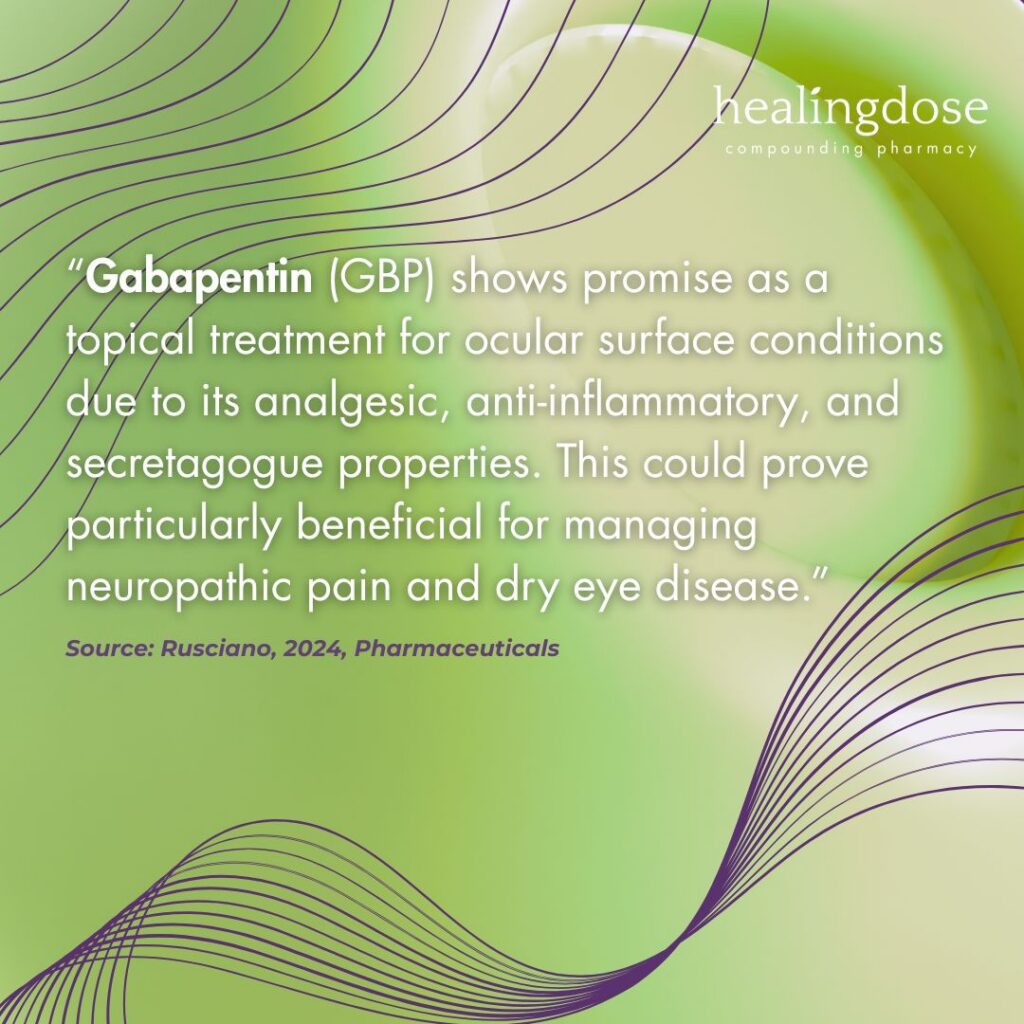 In dry eye care discussions involving gabapentin and dry eyes, compounding may allow physicians to explore customized ophthalmic preparations when appropriate.
